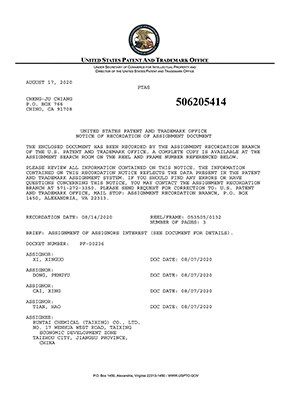 一起草17c 蜜桃新材料股份(fèn)有(yǒu)限公司及旗下全資子公司一起草17c 蜜桃(tài)化學(泰興)有限(xiàn)公司部分專利展示如下: