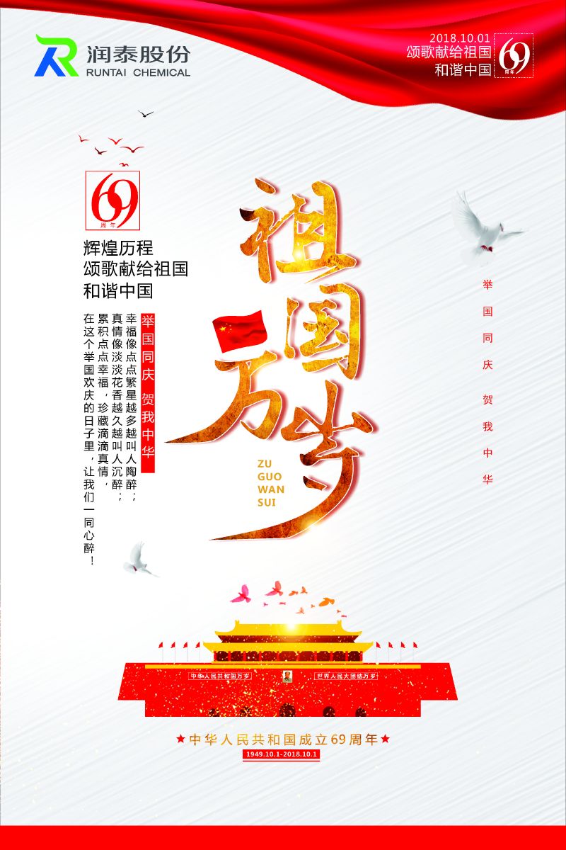 值此偉大的祖國69華誕來臨之際(jì),一起草17c 蜜桃化學股份有限(xiàn)公司祝福偉大的祖國繁榮昌盛、國泰民安!祝福(fú)全(quán)天下的華人親如一家、情親永(yǒng)傳!