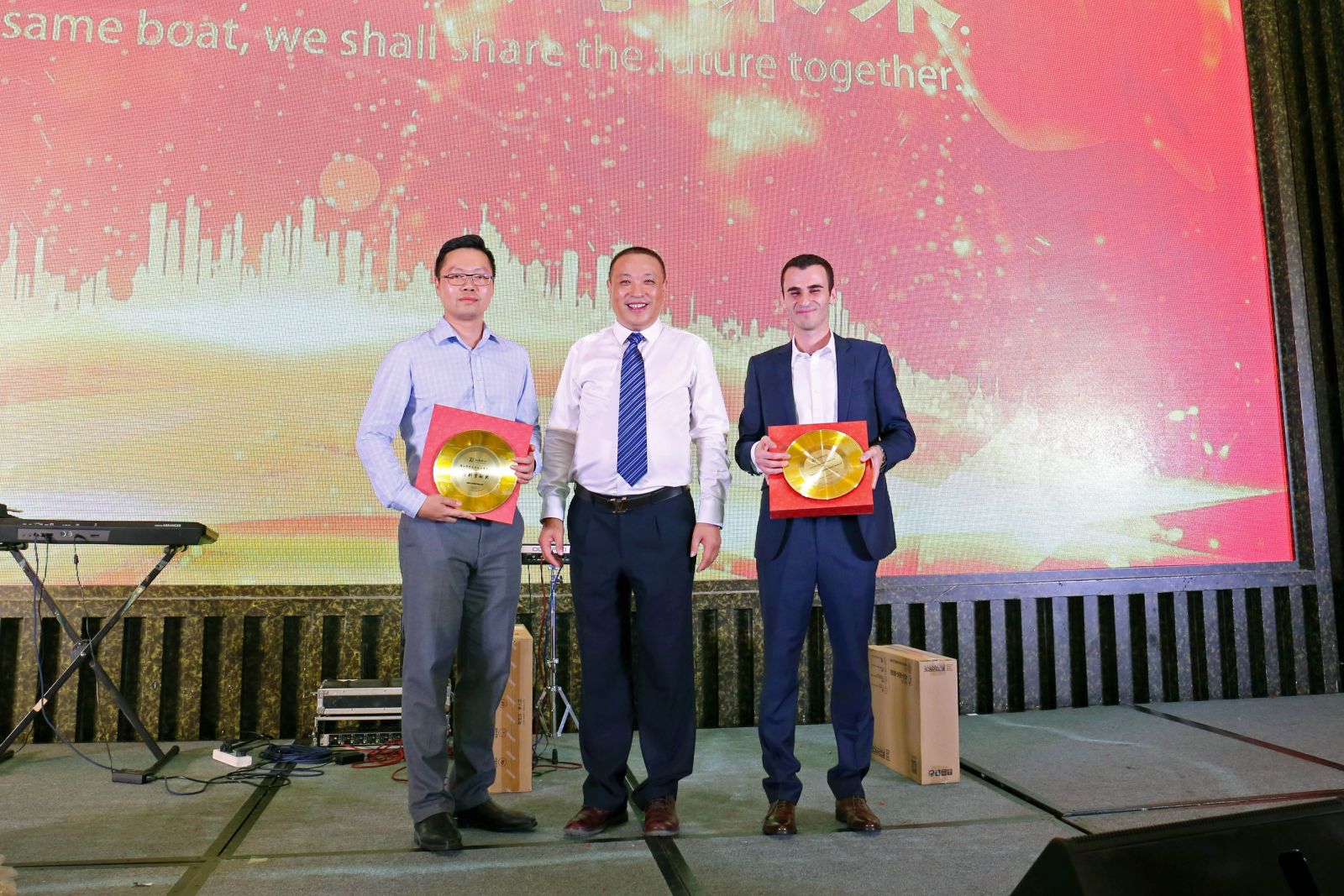 根據綜合測評(píng),評選出2018年度(dù)經(jīng)銷商發展潛力獎16家(jiā)公司,優秀能力獎8家公司,突出貢(gòng)獻獎6家公司,卓越貢獻獎4家公(gōng)司,特別貢獻獎兩家公司(sī),並對獲獎的經銷商頒發了紀念獎(jiǎng)牌。