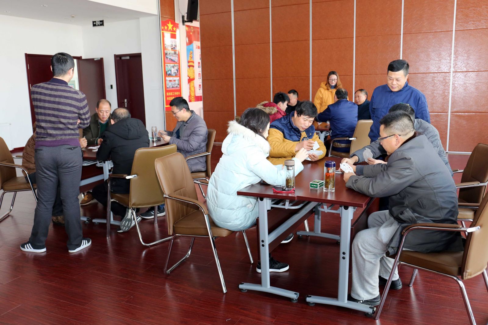 報名選手信心滿滿地齊聚五樓職工活動(dòng)中心,比(bǐ)賽在愉快祥和的氣氛中開始並進行。在規定(dìng)的時間內,參賽(sài)搭檔通力合(hé)作、默契配合,充分施展自己的(de)牌技,鬥智(zhì)鬥勇。牌局比(bǐ)分你追我趕(gǎn),有遙遙領先又馬失前蹄的,也有開局不利又後來居上的,但無論勝負,大家均是喜笑顏開,觀(guān)戰者也(yě)是其樂(lè)融融。