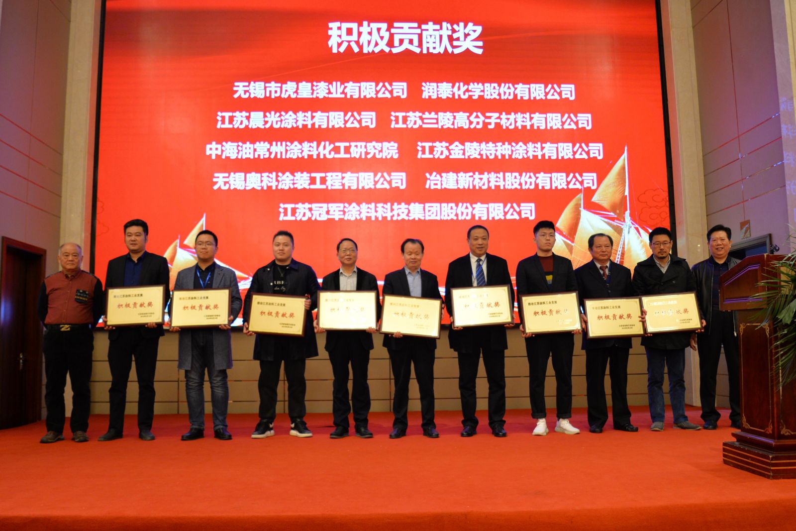 本次大會(huì)現場(chǎng)宣布建立江蘇省塗料行業協會專家庫,並(bìng)成(chéng)立技術(shù)委員會和(hé)標準化委員(yuán)會,一起草17c 蜜桃化學股份有(yǒu)限公司在省塗協10周年的慶典表彰中獲得積極(jí)貢獻獎,總工程師於寧被聘為江蘇省塗料行(háng)業協會專家庫專家,技術委員會主任委員。