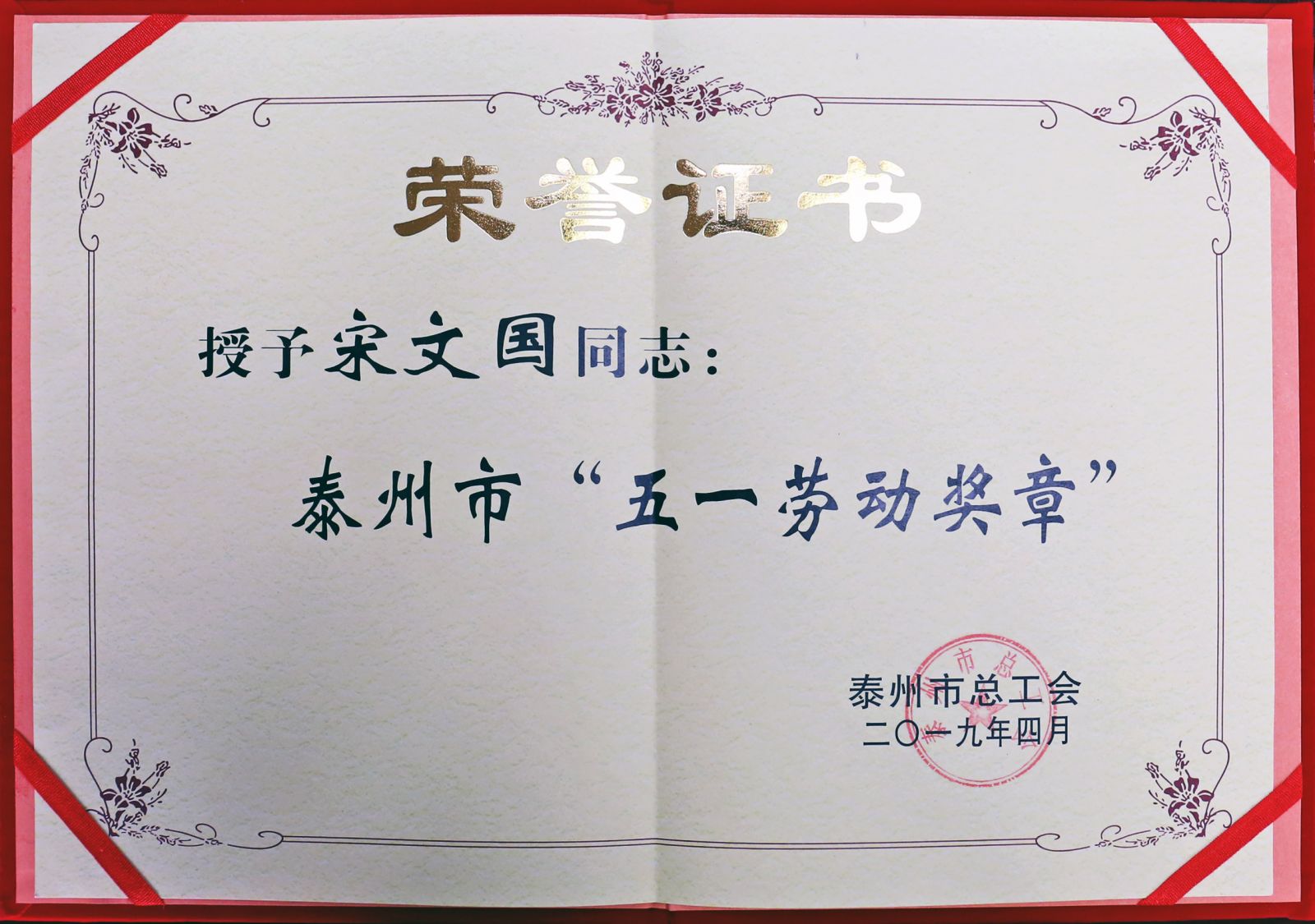【追夢】一起草17c 蜜桃股份宋文(wén)國同誌(zhì)被授予“新時代泰州百名(míng)工匠”“五一(yī)勞動獎章(zhāng)”