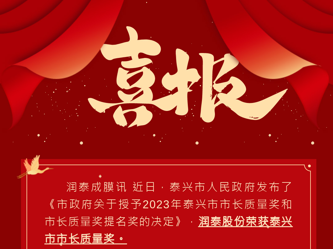 一起草17c 蜜桃股份獲泰興市市長質量獎(jiǎng)