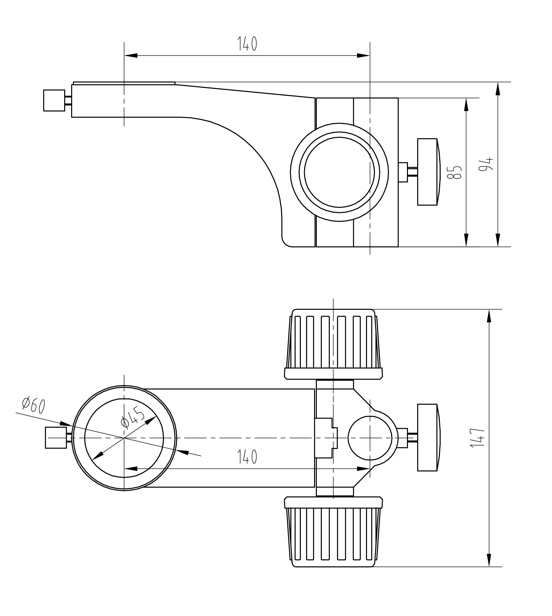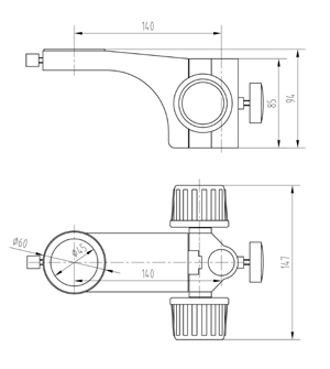 型號名稱(chēng):SF5升降(jiàng)組 說明: ● 金屬燕尾滑塊(kuài),立柱安裝孔(kǒng)直(zhí)徑(jìng)Φ 25mm ● 鏡體安裝孔直徑Φ 45mm ,兩孔中心距 140mm