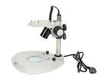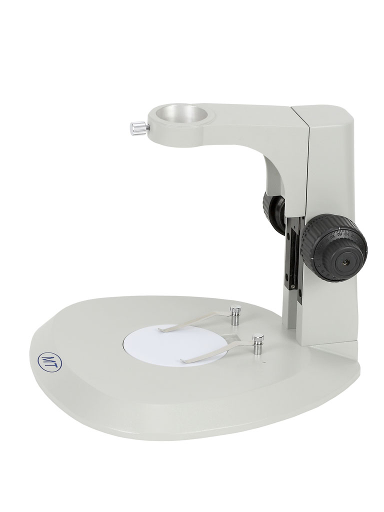 型號名(míng)稱:SD2J-D底座組 說明: ● 粗微調同(tóng)軸手輪,可調整粗動調節手(shǒu)輪張力 ● 鏡架(jià)內置可調(diào)角度、可調亮度6V/10W帶反光杯鹵素上光入射照明光源 ● 底座內置(zhì)110V或220V/5W熒光燈下光透射照(zhào)明 ● 可單獨使用或(huò)者同時使用上光源或下光源照明,分離式各種插頭電(diàn)源線 ● 圓立柱直徑(jìng)Φ25mm,高度240mm ● 升降組調焦範圍:50mm ● 鏡體安裝孔(kǒng)直徑Φ45mm ● 中心工(gōng)作台直徑Φ95mm