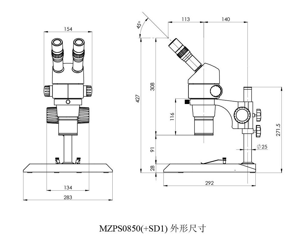 注:MZPS0850用的方立柱底座與標準底座不同,後麵加字母“P”表示。例如:SD4 要改為平行光(guāng)體視(shì)用(yòng)即SD4P。