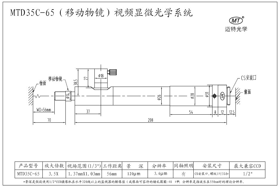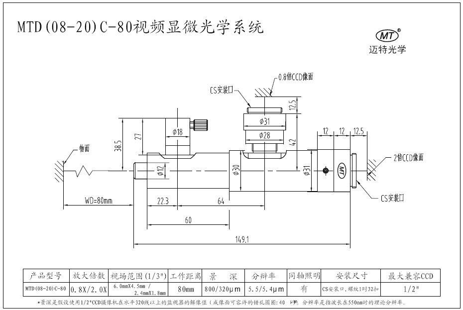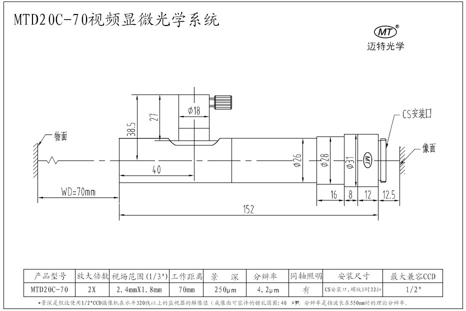 特殊固定倍視頻顯微係統: