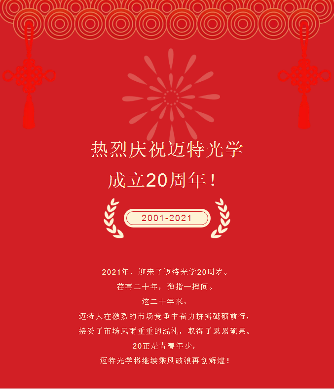 熱烈慶祝(zhù) 黄瓜视频官网光學 成立20周年(nián)!