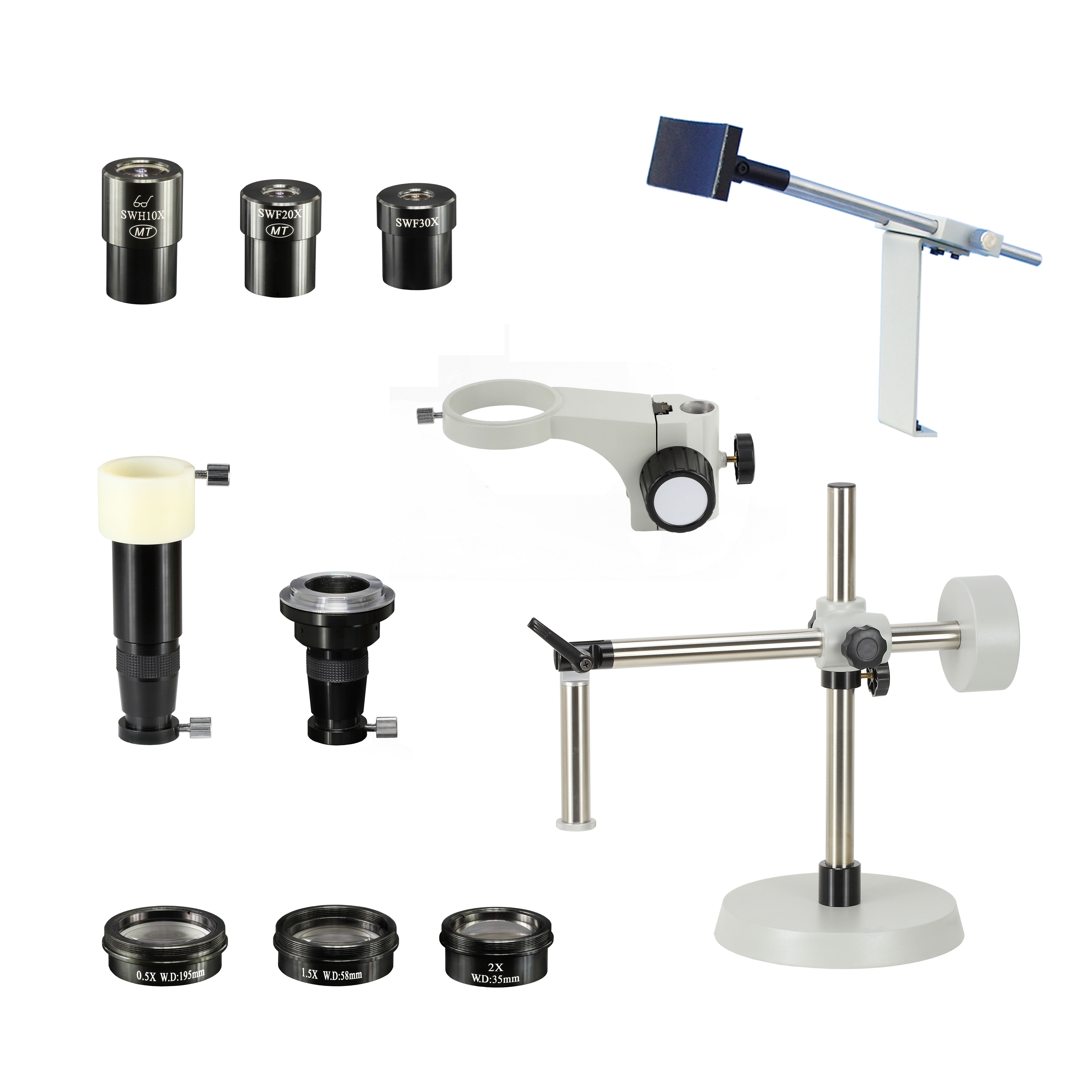 為滿足現代生物研究,半導體和其它科技工業領域不同(tóng)場合的使(shǐ)用要求,體視顯微鏡按模塊化設計,有多種萬(wàn)能支架,底座組,工業綁定用升降組,目鏡,測微目鏡,附加物鏡,攝影(yǐng)攝像、數碼照相裝置,機(jī)械載物台等附件可供選擇。